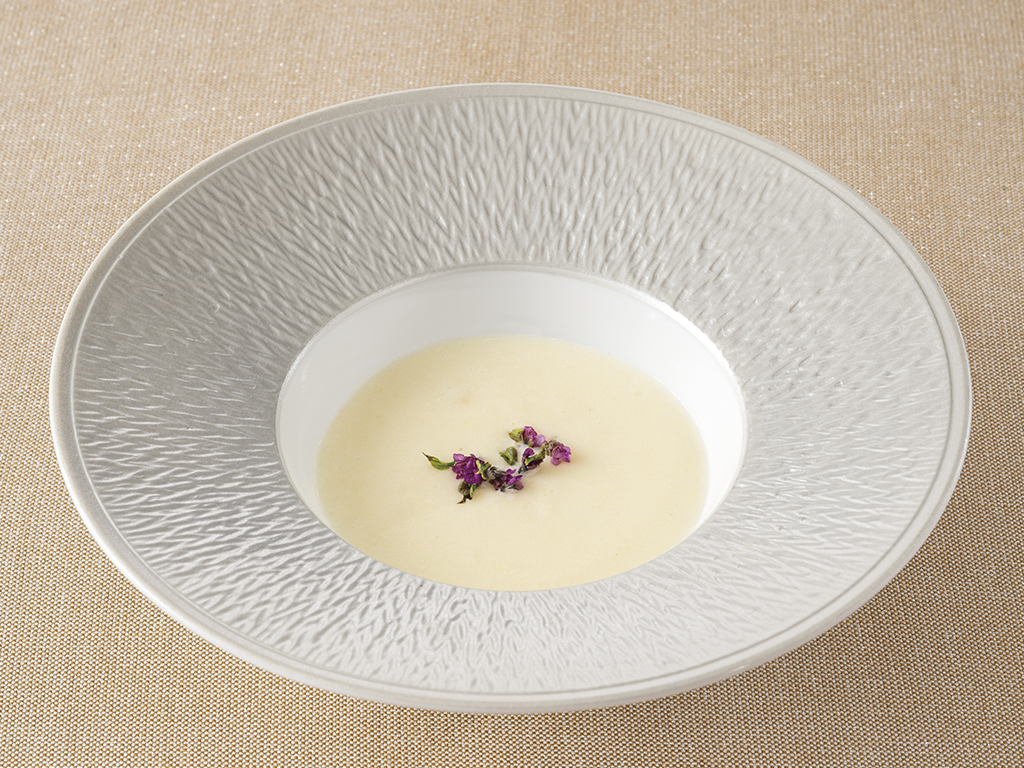 Potage of fresh onions with shiso