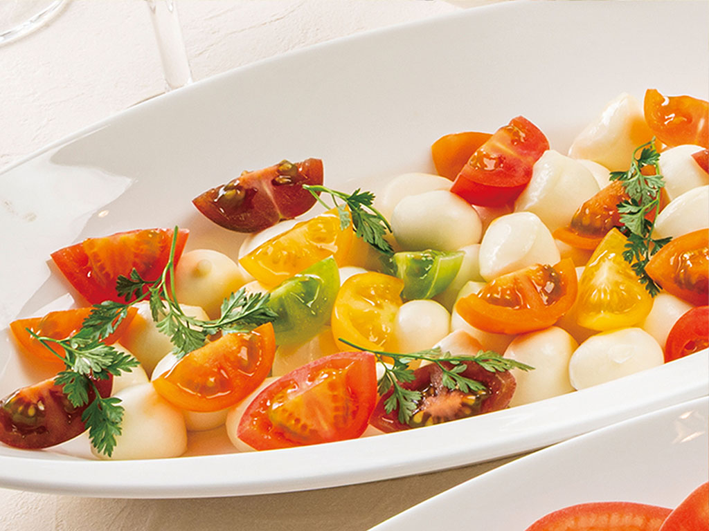 - 卡普雷塞配莫札瑞拉起司和色彩繽紛的番茄